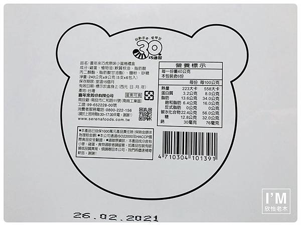 底部有清楚的成份、營養標示跟保存期限,讓最重視的人都可以安心吃放心吃,難怪喜年來蛋捲一直都是大家送禮的首選。