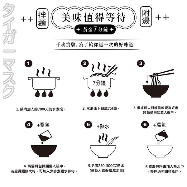 在一個犯懶的午餐時間,找來了四大一小一起來享受唬麵人乾拌麵(謎之音:一次想嚐到五種口味的意圖很明顯),不過這煮麵可不是丟下去就好,試試這幾個不起眼的小步驟,只要七分鐘,一碗香氣誘人的快煮麵即可上桌。(照片取自官方FB)