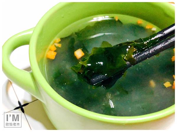 每包拌麵也都附有海帶湯包,將湯包粉末加入250-300cc的熱水中,攪拌均勻,就可以馬上享用一碗熱騰騰的美味海帶芽湯。