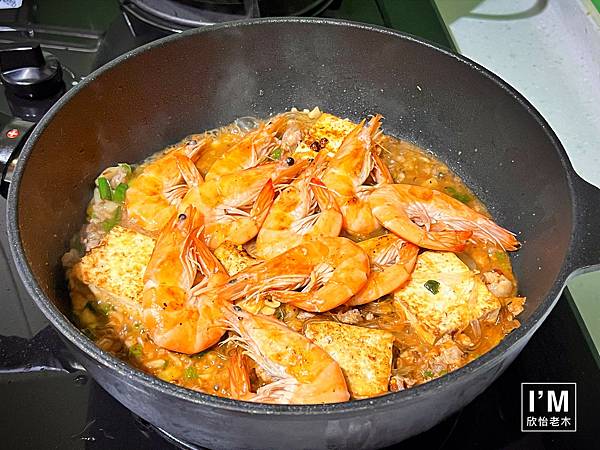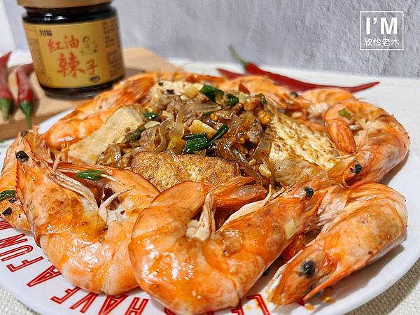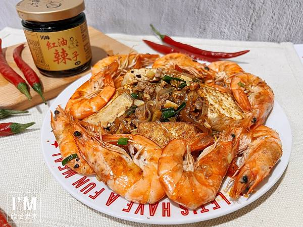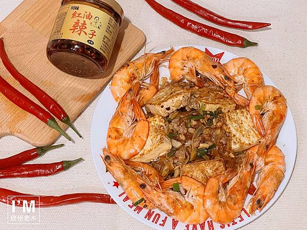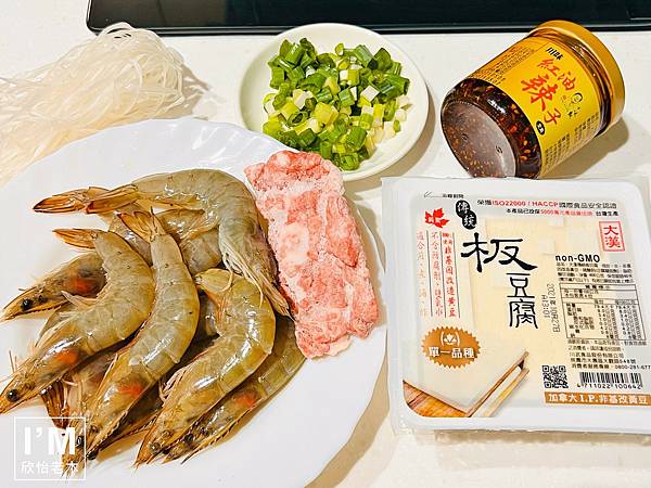食材:蝦、板豆腐、粉絲、絞肉、蔥、川味紅油辣子