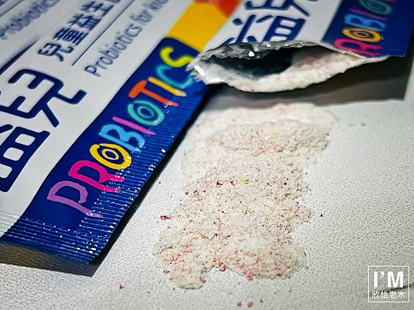 【炘星益兒益生菌】屬粉末狀益生菌,粉末很細,幾乎看不到什麼顆粒。現在兒子四歲了,終於擺脫只能吃半包的年齡,老木也可以不用再安撫他對於不能整包吃光光的難過心情。