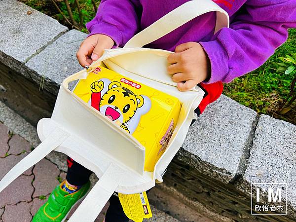 不同於其他禮盒所附的紙袋,喜年來巧虎原味小蛋捲禮盒所附的是輕帆布提袋,用來給兒子當幼兒園餐袋完全無違和感啊~。
