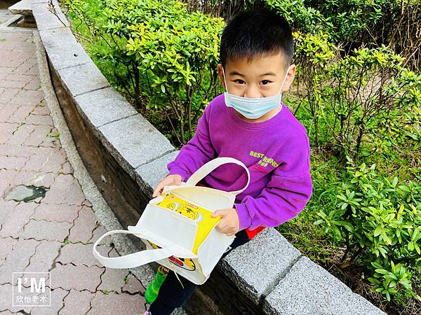 平常手上不愛提任何東西的兒子,不知道是因爲大家的好朋友巧虎?還是在一起就是喜年來的蛋捲?難得他今天願意提著這ㄎㄚ巧虎提袋。