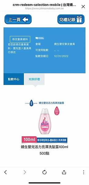 兌換禮品步驟 2:點選想換的禮品,除了小朋友用的嬌生嬰兒沐浴乳之外,也有媽媽愛用的露得清面膜、艾惟諾身體乳與李施德霖漱口水可兌換