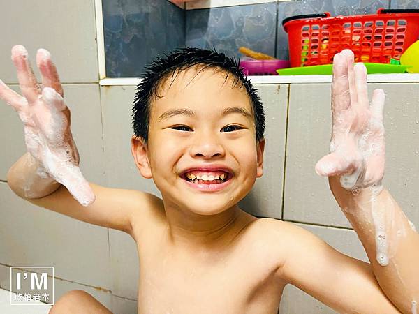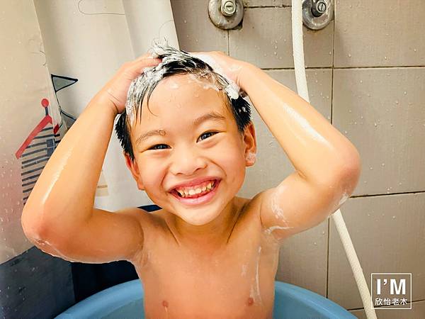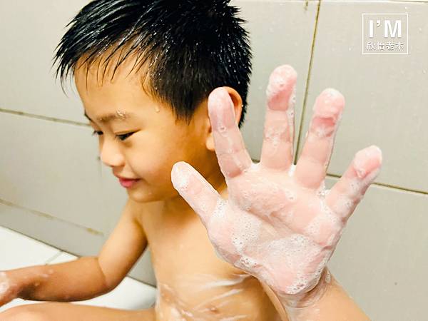 特殊的不流淚/不澀眼配方,不會刺激孩子們脆弱的雙眼,就算泡泡不小心碰到眼睛,兒子也沒有因為不舒服而哭鬧,洗髮洗澡自己來。