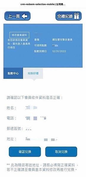 兌換禮品步驟 3:確認送件地址後,即完成兌換獎品