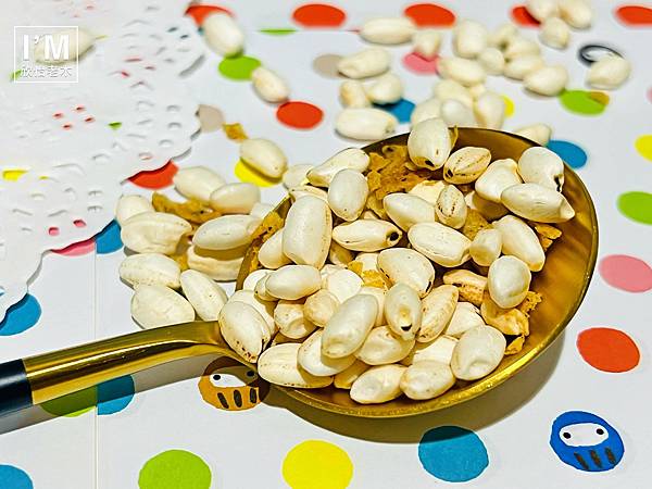 看完包裝外觀後,迫不急待打開蓋子打開封膜,然後愣了幾秒,「奇怪,我買的是米香嗎?」認真搖了幾下,看到打卡奶酥冒出頭來跟我say哈囉後,我才確定我買的不是米香。