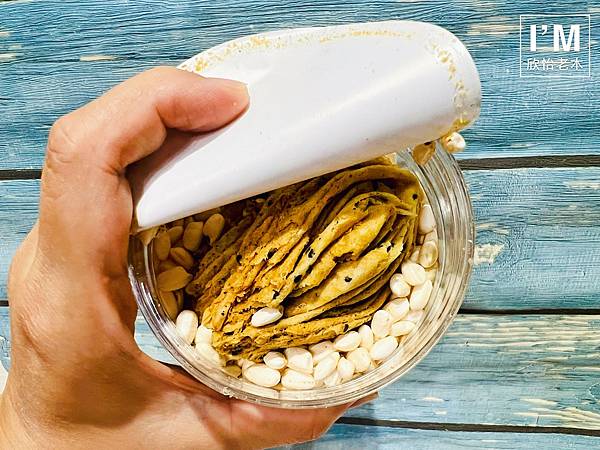 堅持製做過程中不加入任何一滴水,才讓咬下去的每一口都是酥脆的,連只特定吃那101種餅乾的兒子也被收服了,一直吃不停啊!(好歹也留一些給阿公阿嬤吧?!)