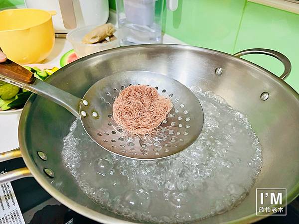 特別的是,所附的米粉沒有特別加進湯裡一起料理,而是滾水煮軟後拌上老媽自製的油蔥醬,又成為了一道主食。