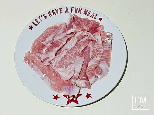 料理的前一晚把肉片從冷凍庫移至冷藏室,讓它自然慢慢解凍,瞧瞧這解凍後的松阪肉片,紋路細緻,還有漂亮的油花,看了非常賞心悅目。
