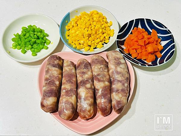 主要食材:究好豬高粱酒香腸、四季豆、玉米粒、紅蘿蔔