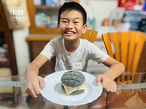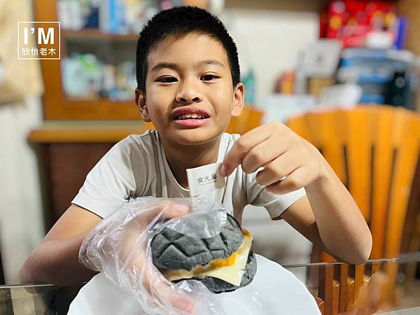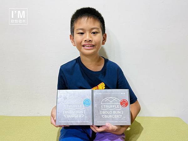 🔺兒子拿到漢堡禮盒超開心,一副準備要開箱的樣子