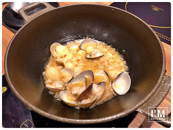 蛤蜊先用蒜頭爆香過,加入高湯後開火煮沸,過程中不時飄出撲鼻的蒜香味,鮮甜的蛤蜊也提升了湯頭的口感,越煮湯頭是越濃郁。