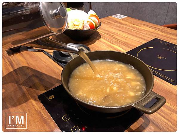 今天的必點鍋物之二。一開始我誤以為是用柴火去燒煮的,一上桌舀起了湯,頓時我懂了,原來是用滿滿的柴魚去熬煮出來的濃厚湯頭,並帶有微微清香的檸檬味,檸檬將柴魚的香氣引出來,是很特別一鍋。