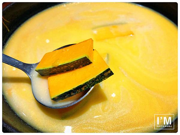 一直很喜歡吃南瓜的老媽,一定要點這鍋的啊!市面上很多南瓜牛奶鍋都是用南瓜粉加牛奶調製,隱鍋可是用新鮮南瓜加牛奶熬煮而成,湯頭一整個濃醇香啊!